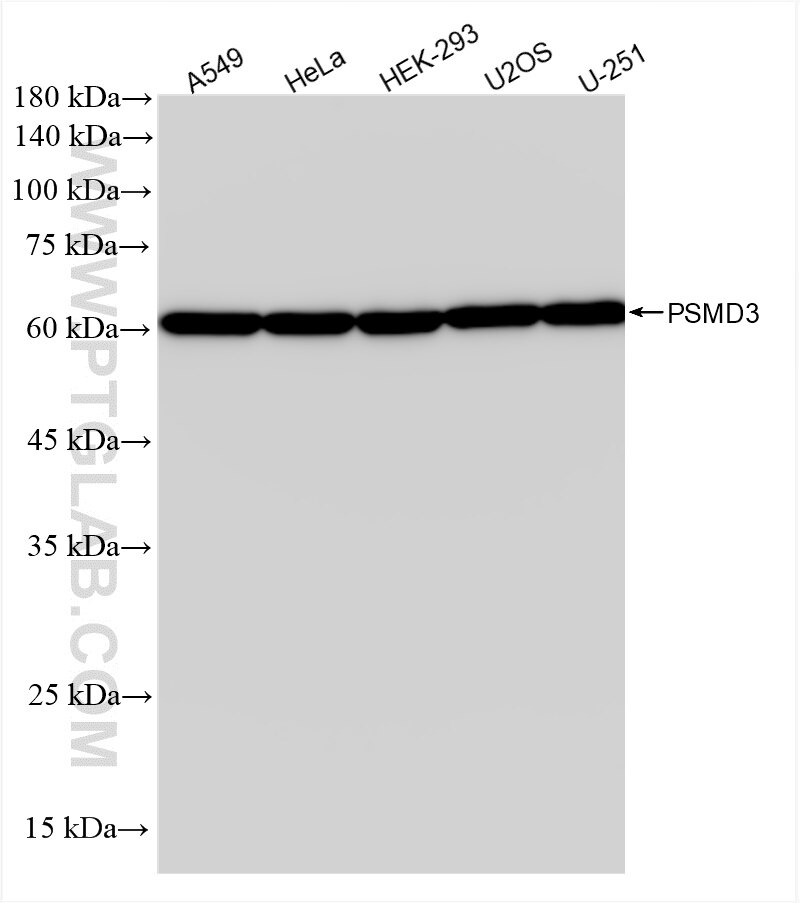The PSMD3 antibody from Proteintech is a rabbit recombinant antibody to a recombinant protein of human PSMD3. This antibody recognizes human antigen. The PSMD3 antibody has been validated for the following applications: WB, IHC, FC (Intra), ELISA analysis.