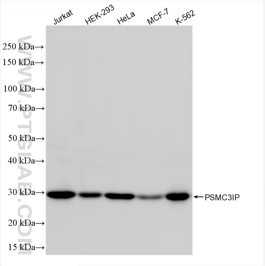 The PSMC3IP antibody from Proteintech is a rabbit recombinant antibody to a recombinant protein of human PSMC3IP. This antibody recognizes human, mouse antigen. The PSMC3IP antibody has been validated for the following applications: WB, ELISA analysis.