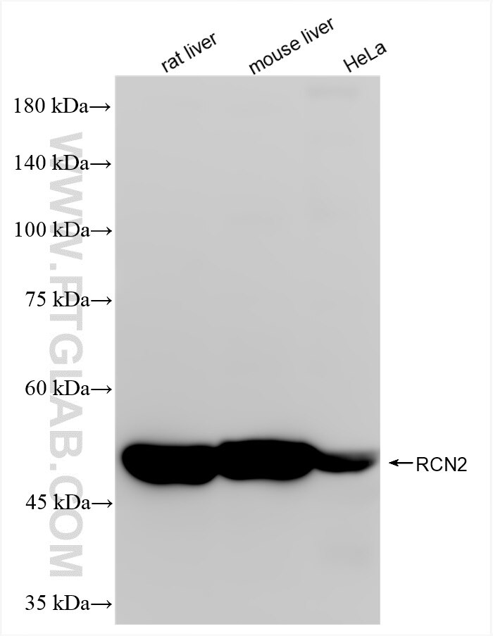 The RCN2 antibody from Proteintech is a rabbit recombinant antibody to a recombinant protein of human RCN2. This antibody recognizes human, mouse, rat antigen. The RCN2 antibody has been validated for the following applications: WB, IF/ICC, ELISA analysis.