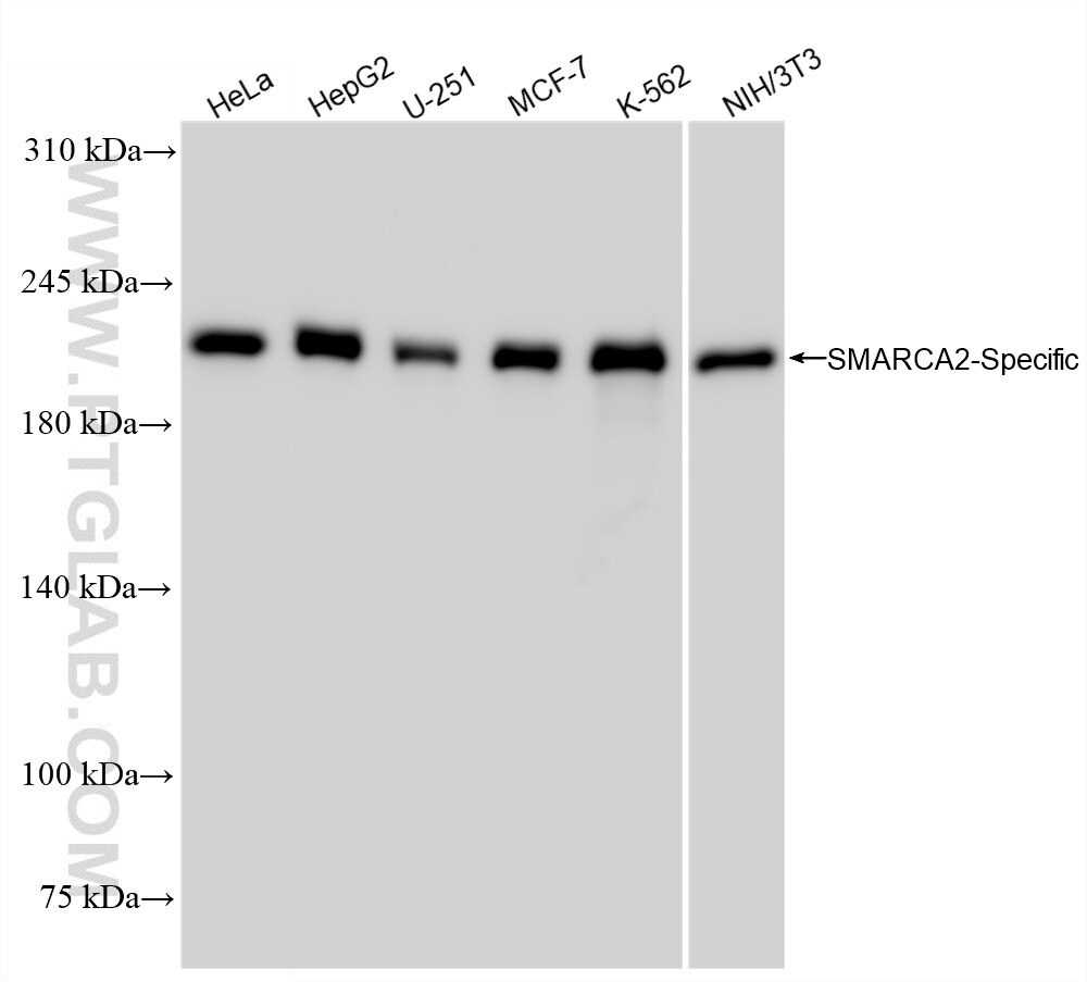 The SMARCA2-Specific antibody from Proteintech is a rabbit recombinant antibody to a recombinant protein of human SMARCA2-Specific. This antibody recognizes human, mouse antigen. The SMARCA2-Specific antibody has been validated for the following applications: WB, IF/ICC, ELISA analysis.