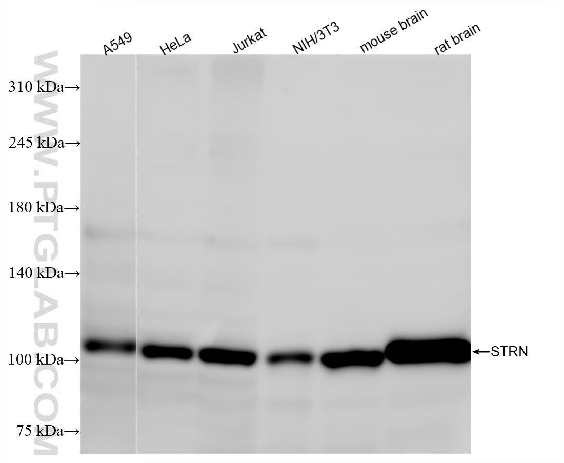 The STRN antibody from Proteintech is a rabbit recombinant antibody to a recombinant protein of human STRN. This antibody recognizes human, mouse, rat antigen. The STRN antibody has been validated for the following applications: WB, IHC, IF-P, ELISA analysis.