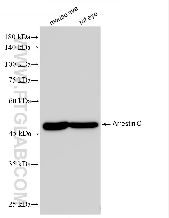 The Arrestin C antibody from Proteintech is a rabbit recombinant antibody to a recombinant protein of human Arrestin C. This antibody recognizes human, mouse, rat antigen. The Arrestin C antibody has been validated for the following applications: WB, IF-P, ELISA analysis.