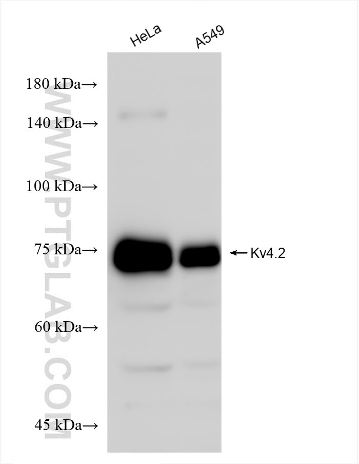 The Kv4.2 antibody from Proteintech is a rabbit recombinant antibody to a recombinant protein of human Kv4.2. This antibody recognizes human, mouse antigen. The Kv4.2 antibody has been validated for the following applications: WB, IHC, IF-P, ELISA analysis.
