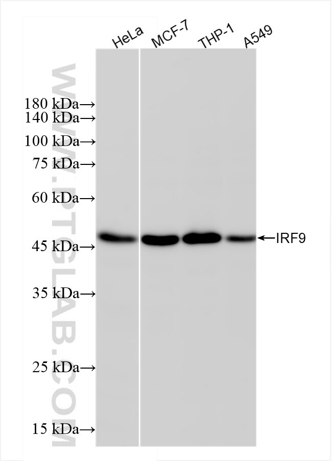 The IRF9 antibody from Proteintech is a rabbit recombinant antibody to a recombinant protein of human IRF9. This antibody recognizes human antigen. The IRF9 antibody has been validated for the following applications: WB, ELISA analysis.