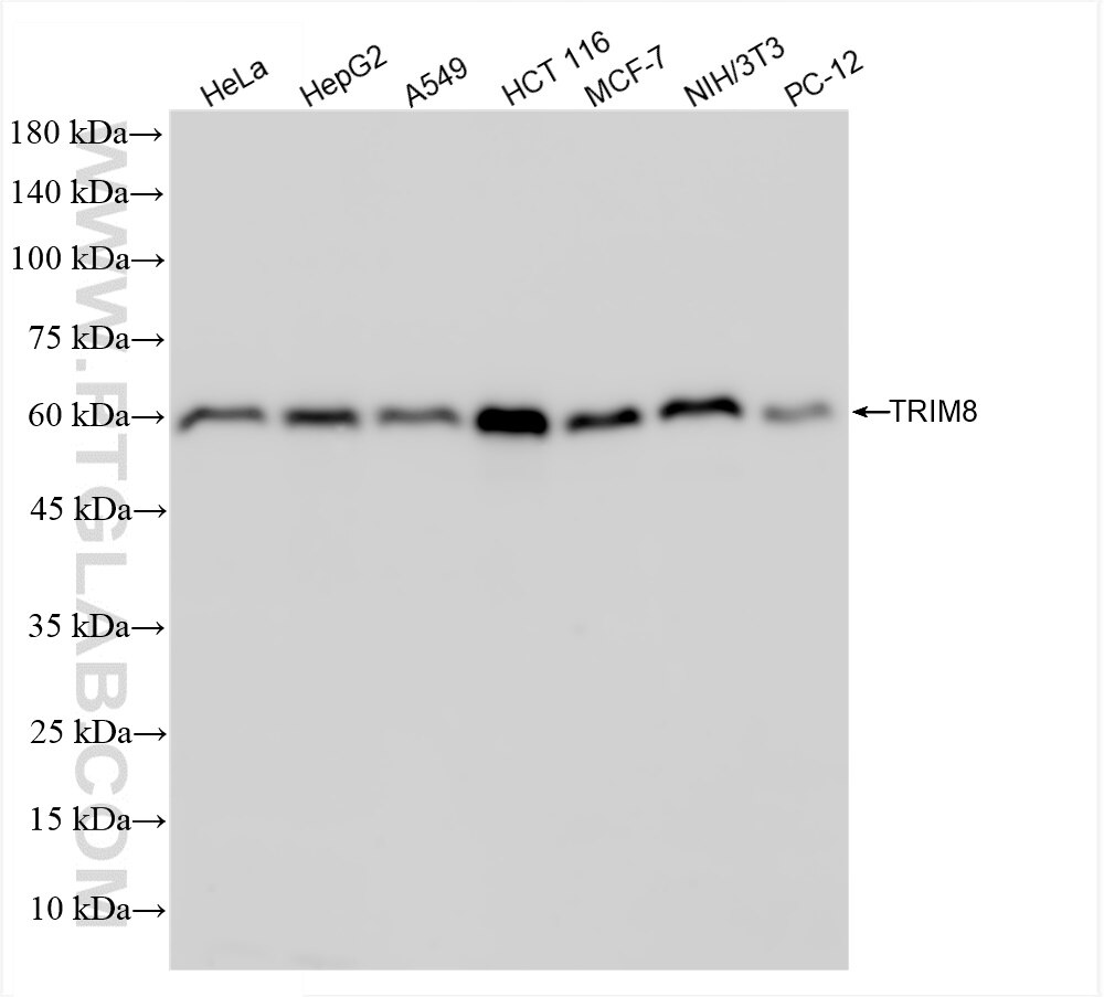 The TRIM8 antibody from Proteintech is a rabbit recombinant antibody to a recombinant protein of human TRIM8. This antibody recognizes human, mouse, rat antigen. The TRIM8 antibody has been validated for the following applications: WB, ELISA analysis.