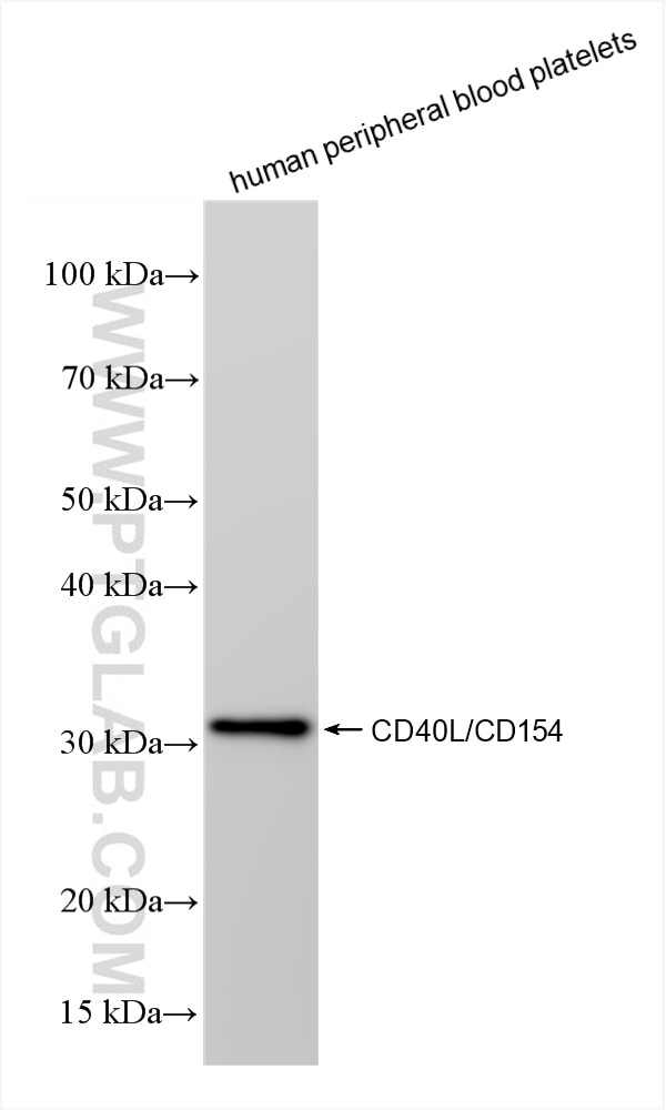The CD40L/CD154 antibody from Proteintech is a rabbit recombinant antibody to a recombinant protein of human CD40L/CD154. This antibody recognizes human antigen. The CD40L/CD154 antibody has been validated for the following applications: WB, ELISA analysis.