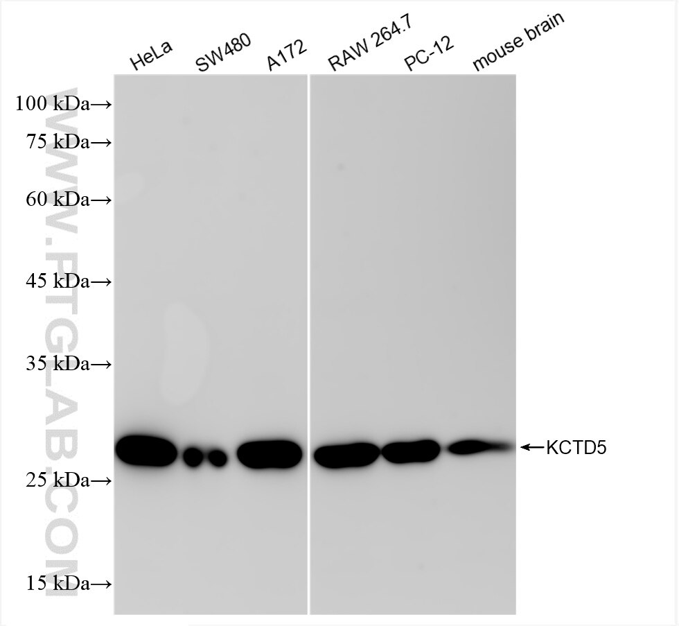 The KCTD5 antibody from Proteintech is a rabbit recombinant antibody to a recombinant protein of human KCTD5. This antibody recognizes human, mouse, rat antigen. The KCTD5 antibody has been validated for the following applications: WB, ELISA analysis.