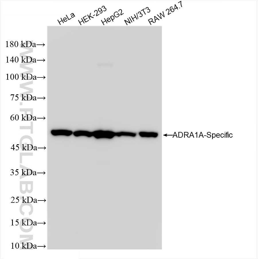 The ADRA1A-Specific antibody from Proteintech is a rabbit recombinant antibody to a peptide of human ADRA1A-Specific. This antibody recognizes human, mouse antigen. The ADRA1A-Specific antibody has been validated for the following applications: WB, ELISA analysis.