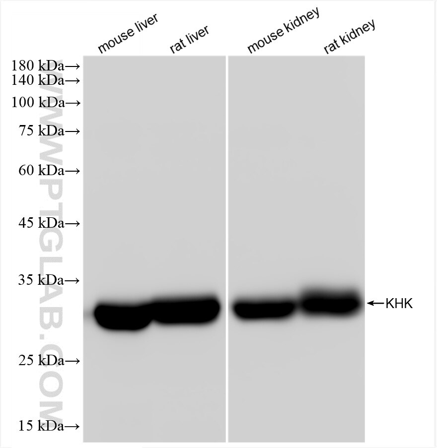 The KHK antibody from Proteintech is a rabbit recombinant antibody to a recombinant protein of human KHK. This antibody recognizes human, mouse, rat antigen. The KHK antibody has been validated for the following applications: WB, ELISA analysis.