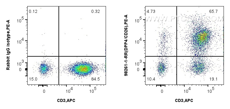 The DPP4/CD26 antibody from Proteintech is a rabbit recombinant antibody to a recombinant protein of human DPP4/CD26. This antibody recognizes human antigen. The DPP4/CD26 antibody has been validated for the following applications: FC analysis.