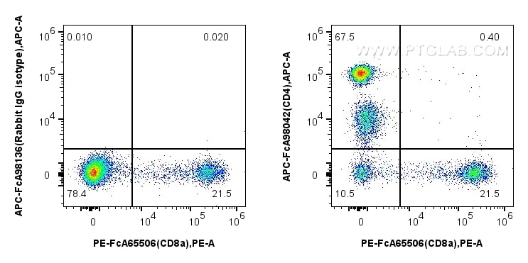 The CD4 antibody from Proteintech is a rabbit recombinant antibody to a recombinant protein of human CD4. This antibody recognizes human antigen. The CD4 antibody has been validated for the following applications: FC analysis. This antibody is apc.