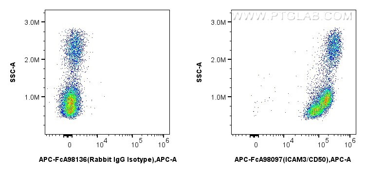 The ICAM3/CD50 antibody from Proteintech is a rabbit recombinant antibody to a recombinant protein of human ICAM3/CD50. This antibody recognizes human antigen. The ICAM3/CD50 antibody has been validated for the following applications: FC analysis. This antibody is apc.