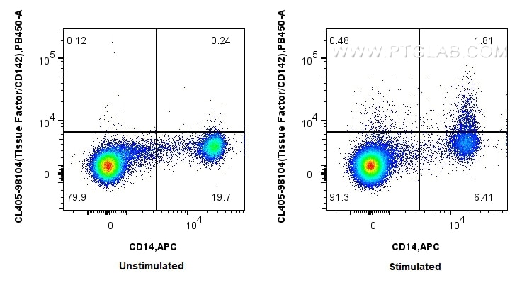 The Tissue Factor/CD142 antibody from Proteintech is a rabbit recombinant antibody to a recombinant protein of human Tissue Factor/CD142. This antibody recognizes human antigen. The Tissue Factor/CD142 antibody has been validated for the following applications: FC analysis. This antibody is coraliteR plus 405.