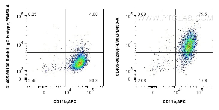 The F4/80 antibody from Proteintech is a rabbit recombinant antibody to a recombinant protein of mouse F4/80. This antibody recognizes mouse antigen. The F4/80 antibody has been validated for the following applications: FC analysis. This antibody is coraliteR plus 405.