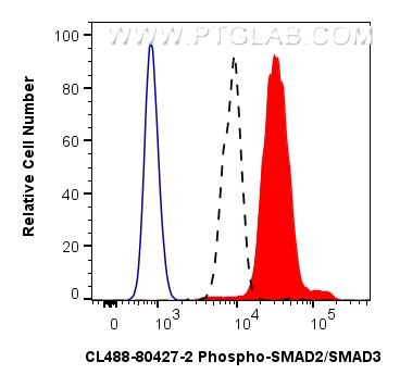 The Phospho-SMAD2 (Ser465/467)/SMAD3 (Ser423/425) antibody from Proteintech is a rabbit recombinant antibody to a peptide of human Phospho-SMAD2 (Ser465/467)/SMAD3 (Ser423/425). This antibody recognizes human antigen. The Phospho-SMAD2 (Ser465/467)/SMAD3 (Ser423/425) antibody has been validated for the following applications: FC (Intra) analysis. This antibody is coraliteR plus 488.