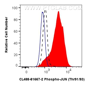 The Phospho-JUN (Thr91/93) antibody from Proteintech is a rabbit recombinant antibody to a peptide of human Phospho-JUN (Thr91/93). This antibody recognizes human, mouse antigen. The Phospho-JUN (Thr91/93) antibody has been validated for the following applications: FC (Intra) analysis. This antibody is coraliteR plus 488.