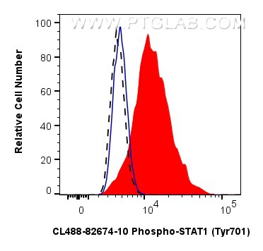 The Phospho-STAT1 (Tyr701) antibody from Proteintech is a rabbit recombinant antibody to a peptide of human Phospho-STAT1 (Tyr701). This antibody recognizes human antigen. The Phospho-STAT1 (Tyr701) antibody has been validated for the following applications: FC (Intra) analysis. This antibody is coraliteR plus 488.