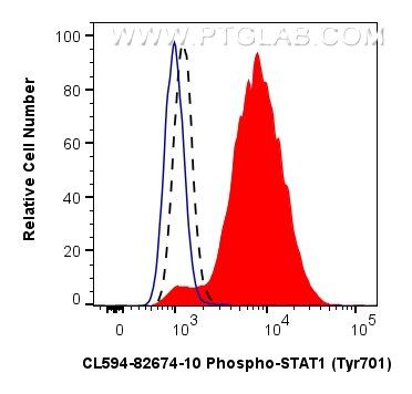 The Phospho-STAT1 (Tyr701) antibody from Proteintech is a rabbit recombinant antibody to a peptide of human Phospho-STAT1 (Tyr701). This antibody recognizes human antigen. The Phospho-STAT1 (Tyr701) antibody has been validated for the following applications: FC (Intra) analysis. This antibody is coraliteR594.