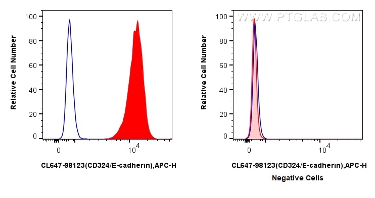 The CD324 (E-cadherin) antibody from Proteintech is a rabbit recombinant antibody to a recombinant protein of human CD324 (E-cadherin). This antibody recognizes human antigen. The CD324 (E-cadherin) antibody has been validated for the following applications: FC analysis. This antibody is coraliteR plus 647.