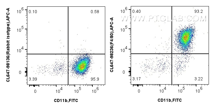 The F4/80 antibody from Proteintech is a rabbit recombinant antibody to a recombinant protein of mouse F4/80. This antibody recognizes mouse antigen. The F4/80 antibody has been validated for the following applications: FC analysis. This antibody is coraliteR plus 647.