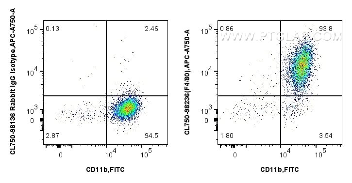 The F4/80 antibody from Proteintech is a rabbit recombinant antibody to a recombinant protein of mouse F4/80. This antibody recognizes mouse antigen. The F4/80 antibody has been validated for the following applications: FC analysis. This antibody is coraliteR plus 750.