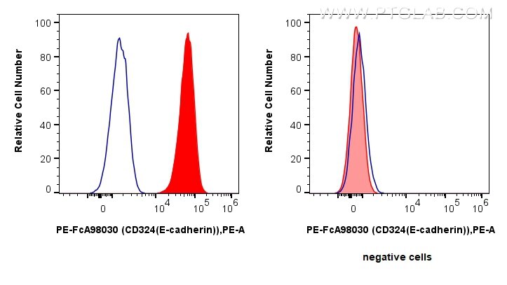 The CD324 (E-cadherin) antibody from Proteintech is a rabbit recombinant antibody to a recombinant protein of human CD324 (E-cadherin). This antibody recognizes human antigen. The CD324 (E-cadherin) antibody has been validated for the following applications: FC analysis. This antibody is pe.