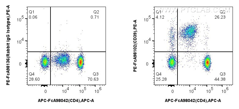The CD39/ENTPD1 antibody from Proteintech is a rabbit recombinant antibody to a recombinant protein of human CD39/ENTPD1. This antibody recognizes human antigen. The CD39/ENTPD1 antibody has been validated for the following applications: FC analysis. This antibody is pe.