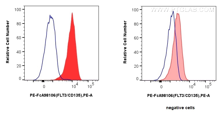 The FLT3/CD135 antibody from Proteintech is a rabbit recombinant antibody to a recombinant protein of human FLT3/CD135. This antibody recognizes human antigen. The FLT3/CD135 antibody has been validated for the following applications: FC analysis. This antibody is pe.