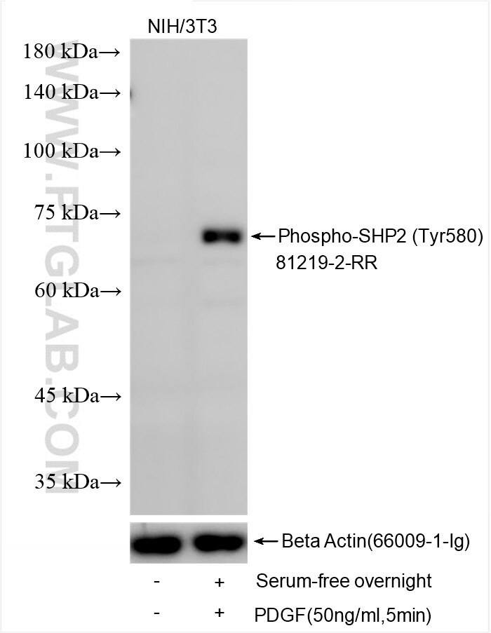 The Phospho-SHP2 (Tyr580) antibody from Proteintech is a rabbit recombinant antibody to a peptide of human Phospho-SHP2 (Tyr580). This antibody recognizes human, mouse, rat antigen. The Phospho-SHP2 (Tyr580) antibody has been validated for the following applications: WB, ELISA analysis.