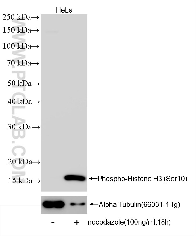 The Phospho-Histone H3 (Ser10) antibody from Proteintech is a rabbit recombinant antibody to a peptide of human Phospho-Histone H3 (Ser10). This antibody recognizes human, mouse, rat antigen. The Phospho-Histone H3 (Ser10) antibody has been validated for the following applications: WB, IF/ICC, ELISA analysis.