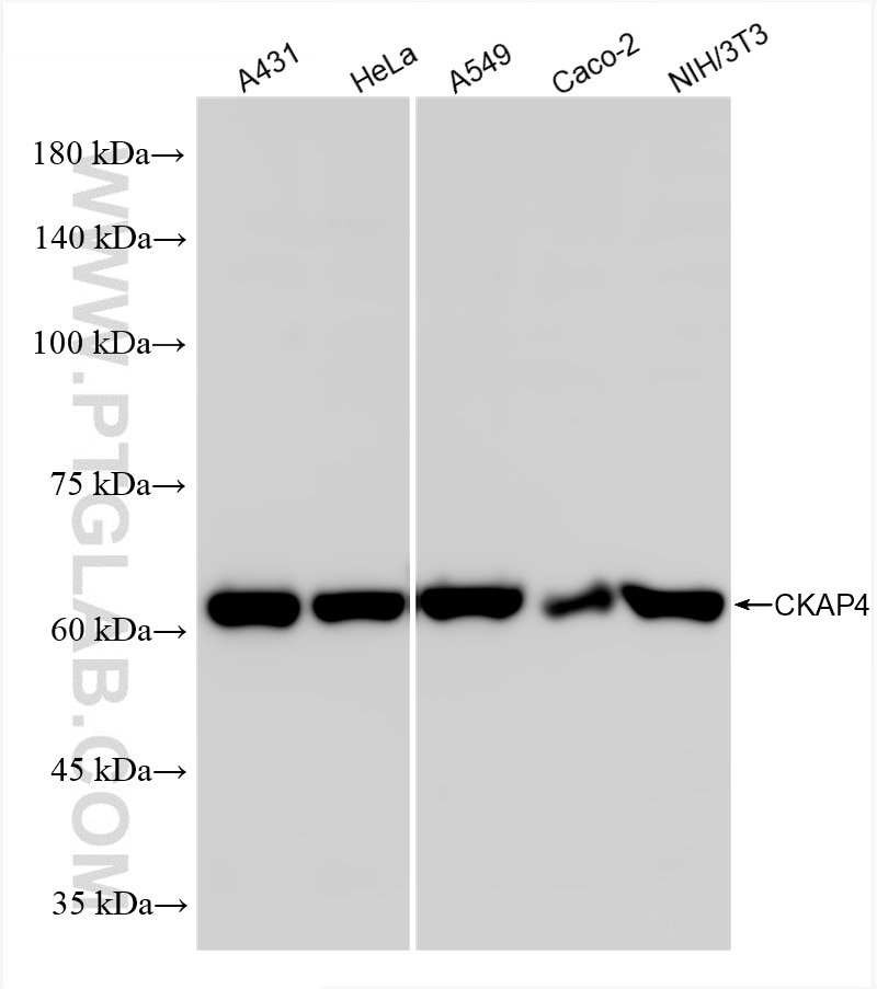 The CKAP4 antibody from Proteintech is a rabbit recombinant antibody to a recombinant protein of human CKAP4. This antibody recognizes human, mouse antigen. The CKAP4 antibody has been validated for the following applications: WB, IHC, ELISA analysis.