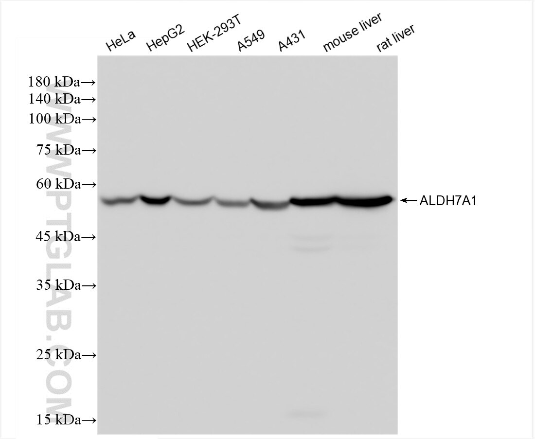 The ALDH7A1 antibody from Proteintech is a rabbit recombinant antibody to a recombinant protein of human ALDH7A1. This antibody recognizes human, mouse, rat antigen. The ALDH7A1 antibody has been validated for the following applications: WB, ELISA analysis.