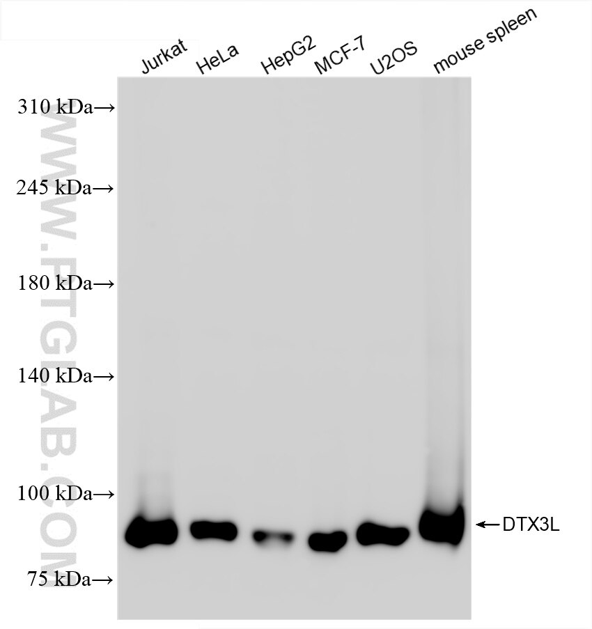 The DTX3L antibody from Proteintech is a rabbit recombinant antibody to a recombinant protein of human DTX3L. This antibody recognizes human, mouse antigen. The DTX3L antibody has been validated for the following applications: WB, ELISA analysis.