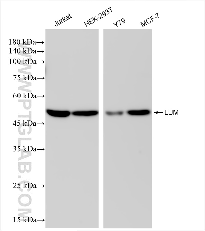 The Lumican antibody from Proteintech is a rabbit recombinant antibody to a recombinant protein of human Lumican. This antibody recognizes human antigen. The Lumican antibody has been validated for the following applications: WB, IHC, ELISA analysis.