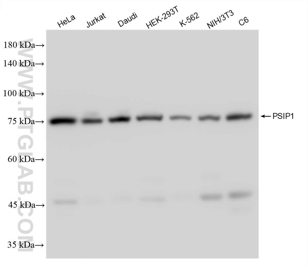 The PSIP1 antibody from Proteintech is a rabbit recombinant antibody to a recombinant protein of human PSIP1. This antibody recognizes human, mouse, rat antigen. The PSIP1 antibody has been validated for the following applications: WB, IHC, IF/ICC, ELISA analysis.