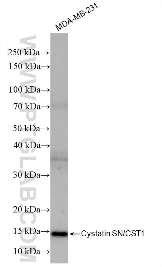 The Cystatin SN/CST1 antibody from Proteintech is a rabbit recombinant antibody to a recombinant protein of human Cystatin SN/CST1. This antibody recognizes human antigen. The Cystatin SN/CST1 antibody has been validated for the following applications: WB, ELISA analysis.