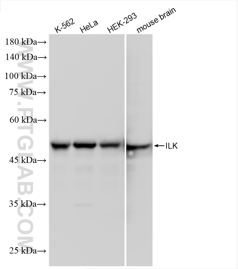 The ILK antibody from Proteintech is a rabbit recombinant antibody to a recombinant protein of human ILK. This antibody recognizes human, mouse, pig antigen. The ILK antibody has been validated for the following applications: WB, IF/ICC, ELISA analysis.