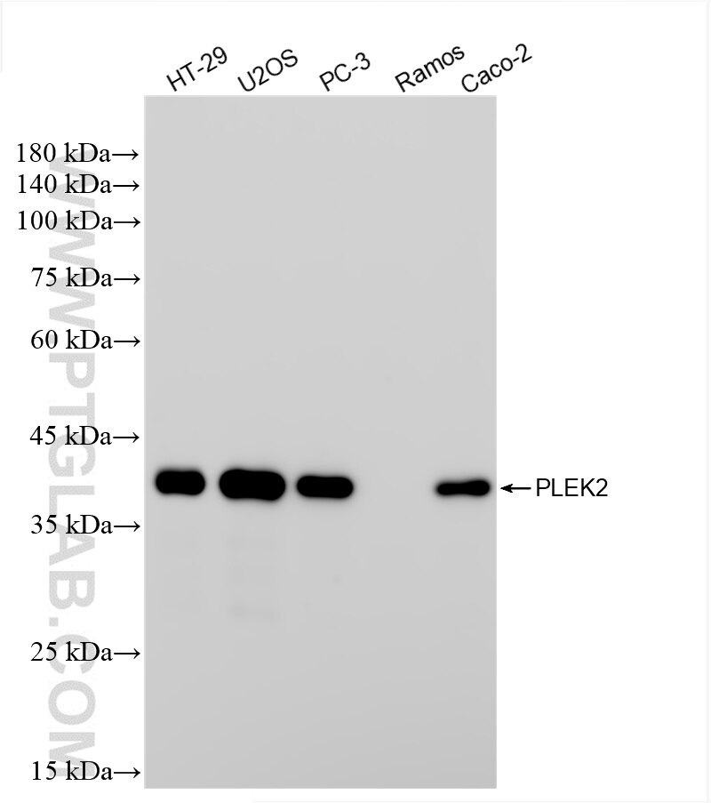 The PLEK2 antibody from Proteintech is a rabbit recombinant antibody to a recombinant protein of human PLEK2. This antibody recognizes human antigen. The PLEK2 antibody has been validated for the following applications: WB, ELISA analysis.
