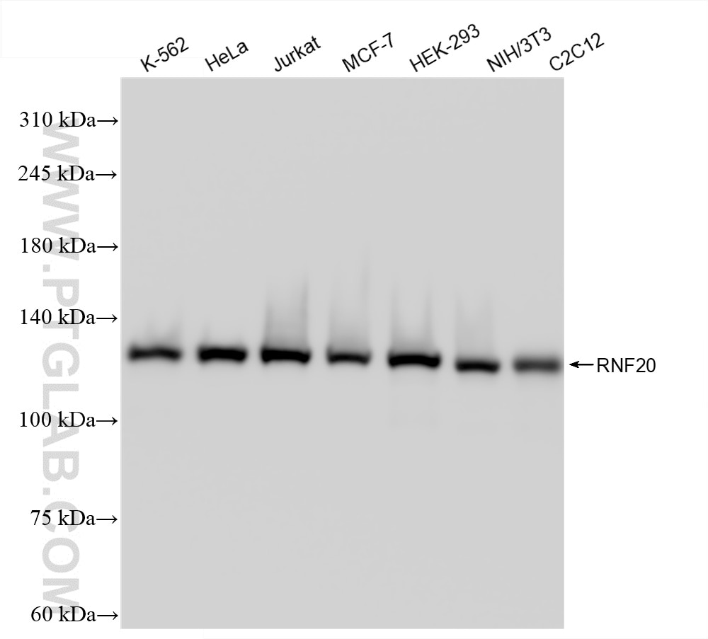 The RNF20 antibody from Proteintech is a rabbit recombinant antibody to a recombinant protein of human RNF20. This antibody recognizes human, mouse antigen. The RNF20 antibody has been validated for the following applications: WB, IF/ICC, ELISA analysis.