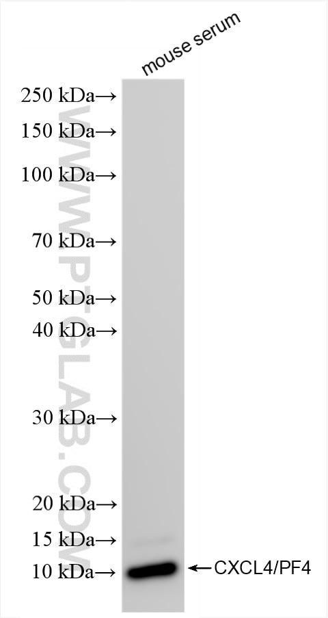 The CXCL4/PF4 antibody from Proteintech is a rabbit recombinant antibody to a fusionprotein of human CXCL4/PF4. This antibody recognizes human, mouse antigen. The CXCL4/PF4 antibody has been validated for the following applications: WB, ELISA analysis.
