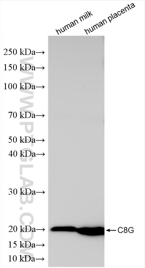 The C8G antibody from Proteintech is a rabbit recombinant antibody to a recombinant protein of human C8G. This antibody recognizes human antigen. The C8G antibody has been validated for the following applications: WB, ELISA analysis.