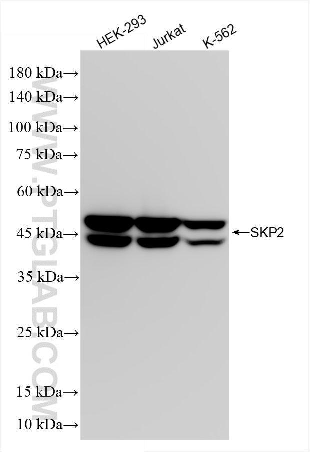 The SKP2 antibody from Proteintech is a rabbit recombinant antibody to a recombinant protein of human SKP2. This antibody recognizes human antigen. The SKP2 antibody has been validated for the following applications: WB, IF/ICC, ELISA analysis.