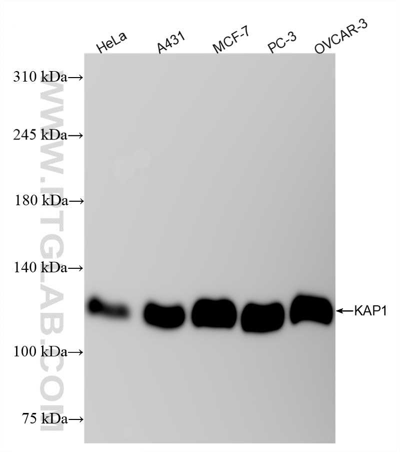 The KAP1 antibody from Proteintech is a rabbit recombinant antibody to a recombinant protein of human KAP1. This antibody recognizes human antigen. The KAP1 antibody has been validated for the following applications: WB, IF/ICC, ELISA analysis.