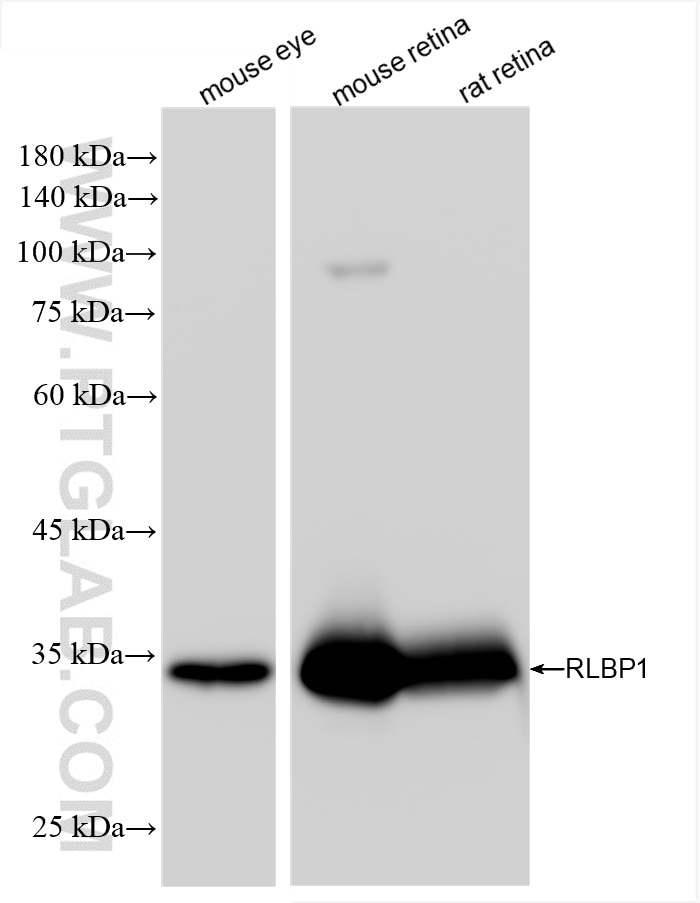 The RLBP1 antibody from Proteintech is a rabbit recombinant antibody to a recombinant protein of human RLBP1. This antibody recognizes human, mouse, rat antigen. The RLBP1 antibody has been validated for the following applications: WB, IHC, IF-P, ELISA analysis.