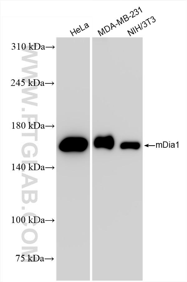 The mDia1 antibody from Proteintech is a rabbit recombinant antibody to a recombinant protein of human mDia1. This antibody recognizes human, mouse antigen. The mDia1 antibody has been validated for the following applications: WB, IF/ICC, ELISA analysis.