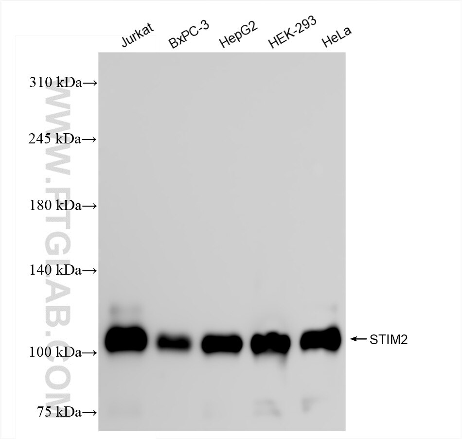 The STIM2 antibody from Proteintech is a rabbit recombinant antibody to a recombinant protein of human STIM2. This antibody recognizes human antigen. The STIM2 antibody has been validated for the following applications: WB, ELISA analysis.