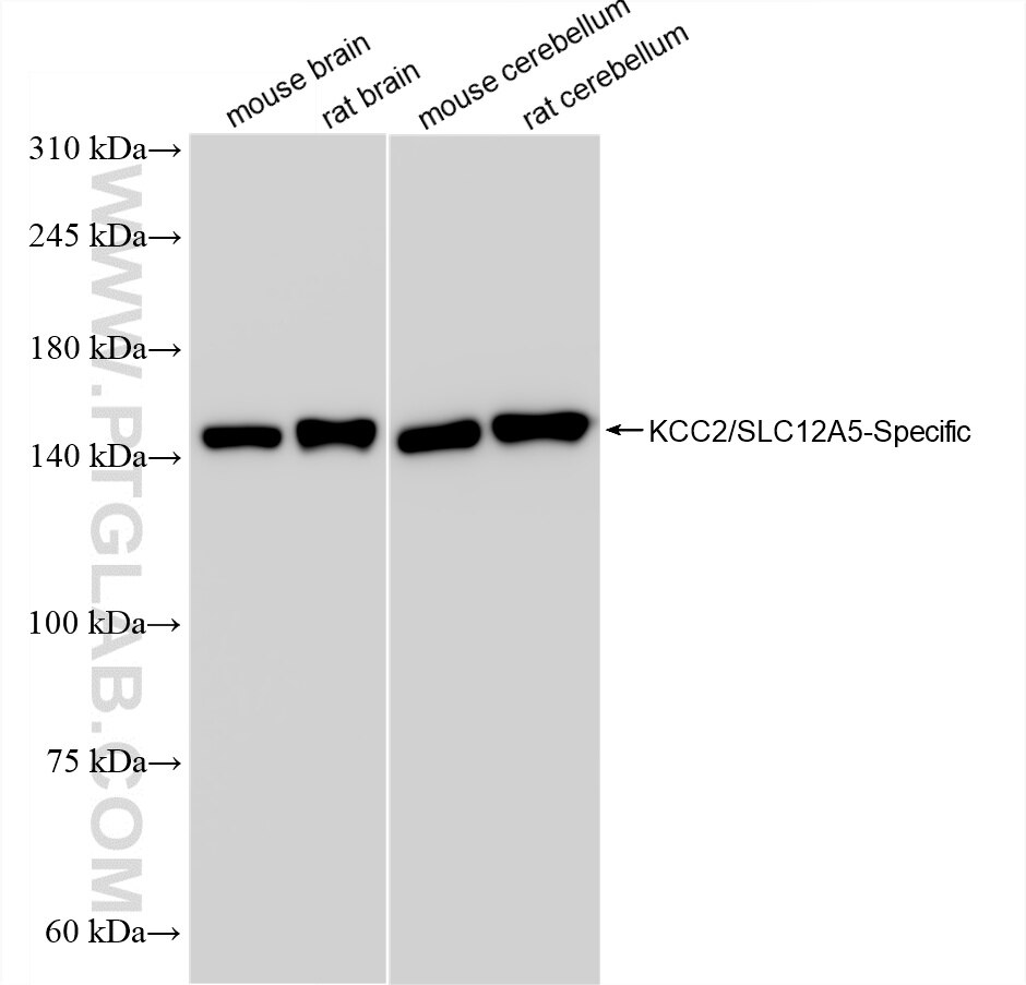 The KCC2/SLC12A5-Specific antibody from Proteintech is a rabbit recombinant antibody to a peptide of human KCC2/SLC12A5-Specific. This antibody recognizes human, mouse, pig antigen. The KCC2/SLC12A5-Specific antibody has been validated for the following applications: WB, ELISA analysis.