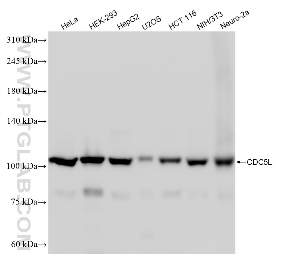 The CDC5L antibody from Proteintech is a rabbit recombinant antibody to a recombinant protein of human CDC5L. This antibody recognizes human, mouse antigen. The CDC5L antibody has been validated for the following applications: WB, IF/ICC, ELISA analysis.