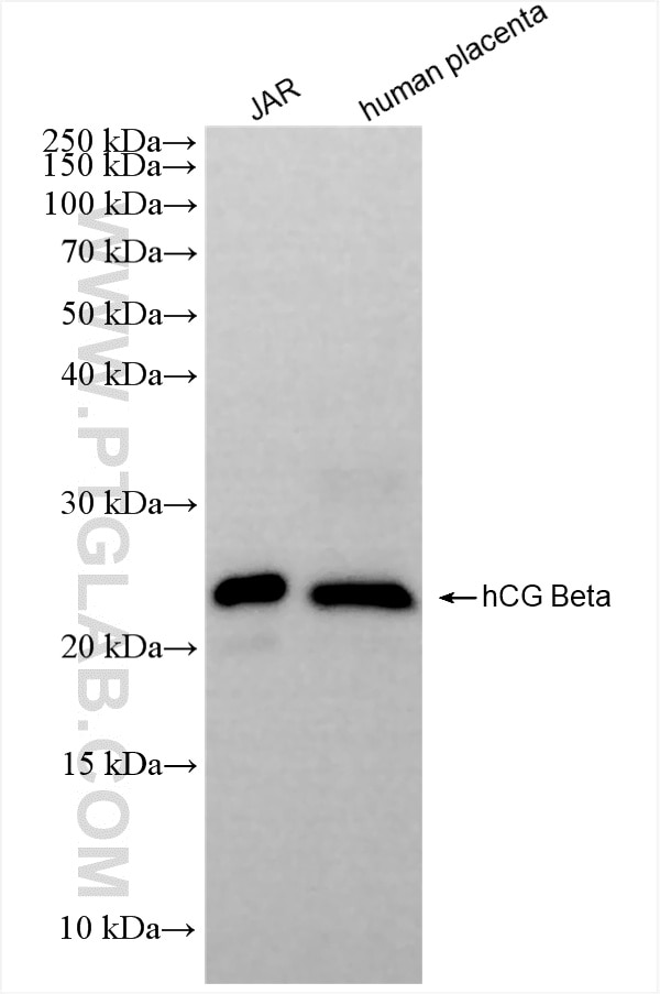 The hCG Beta antibody from Proteintech is a rabbit recombinant antibody to a fusionprotein of human hCG Beta. This antibody recognizes human antigen. The hCG Beta antibody has been validated for the following applications: WB, IHC, ELISA analysis.