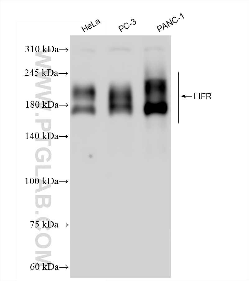 The LIFR antibody from Proteintech is a rabbit recombinant antibody to a fusionprotein of human LIFR. This antibody recognizes human antigen. The LIFR antibody has been validated for the following applications: WB, ELISA analysis.